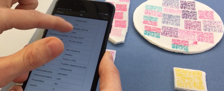 The QR code, which is printed in edible ink on the drug, will allow the patient to scan a barcode by a mobile phone app, revealing the patient, the dose, and how it should be administered. The app will also create an automatic alarm on a patient’s phone for when it should be taken.