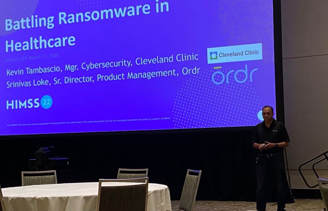 Srinivas Loke, senior director, product management, Ordr, speaks at the HIMSS 2022 Conference.