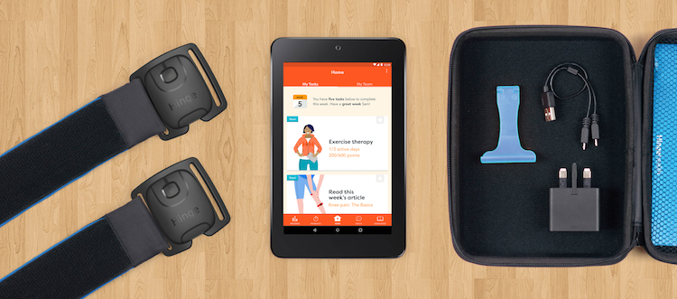 Hinge Health is working to create remote physical therapy and behavioral health treatment using wearables and software. The new stream of funding will support development of new products to address lower back and knee pain as well as create new programs to treat hip, shoulder, and neck pain. Current Hinge Health kits include two wearables with motion sensors, a tablet loaded with Hinge software, and some tablet accessories.