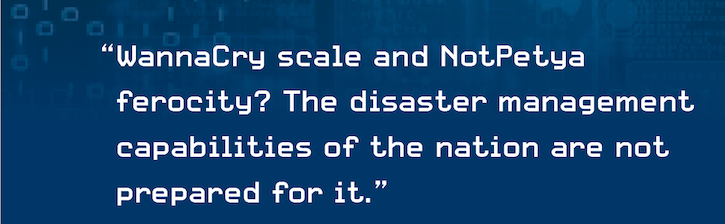 Another cybersecurity source ruminated on what would happen if a single attack could harness both of the weapons’ strengths. “That scenario breaks through all [of] +the geographic boundaries that are the premise of disaster management. A tornado is geographically bounded. A WannaCry attack has no boundary,” they said. “WannaCry scale and NotPetya ferocity? The disaster management capabilities of the nation are not prepared for it.”